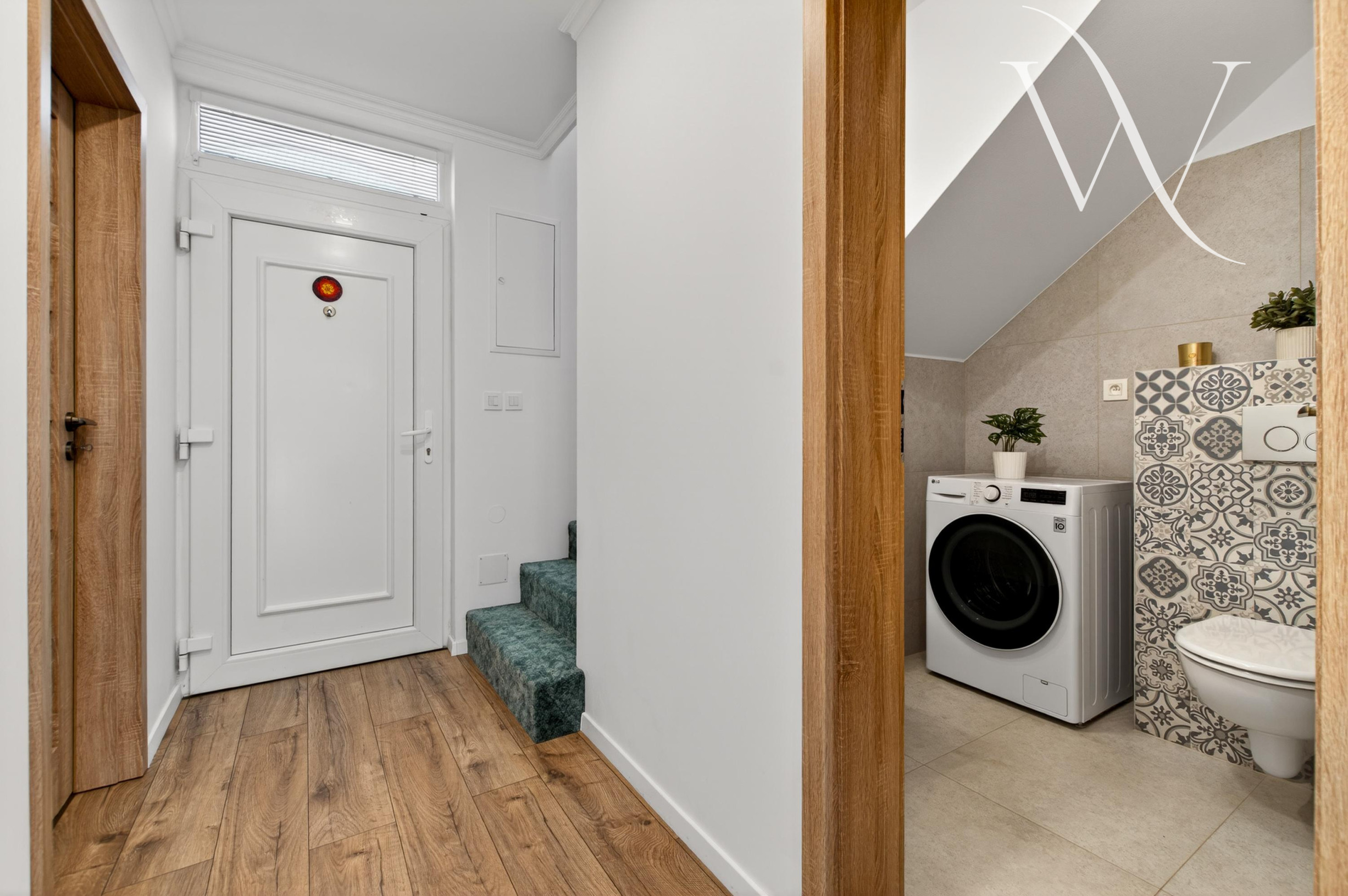 Na prvom podlaží sa pri vstupe do domu nachádza vstupná chodba. K dispozícii je technická miestnosť, v ktorej sa nachádza nový elektrický kotol so zásobníkom na vodu 120 l. Je tu samostatné WC s umývadlom a priestrom na pračku. Dominantou domu je obývacia izba spojená s jedálenskou časťou a kuchyňou. Kuchynská linka je nová,plne vybavená a poskytuje dostatok úložného, ale aj pracovného priestoru. K dispozícii je aj krb. Z obývacej izby vedie priamy vstup do krásne záhrady plnej farebných kvetov a stromov. Pôsobí naozaj príjemne.
