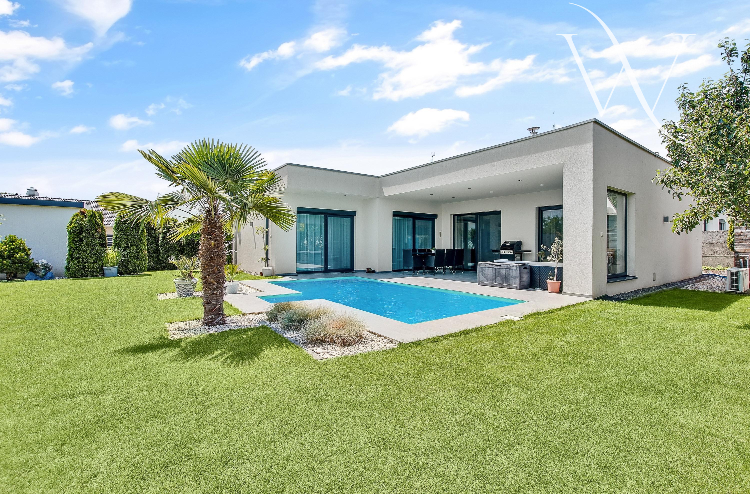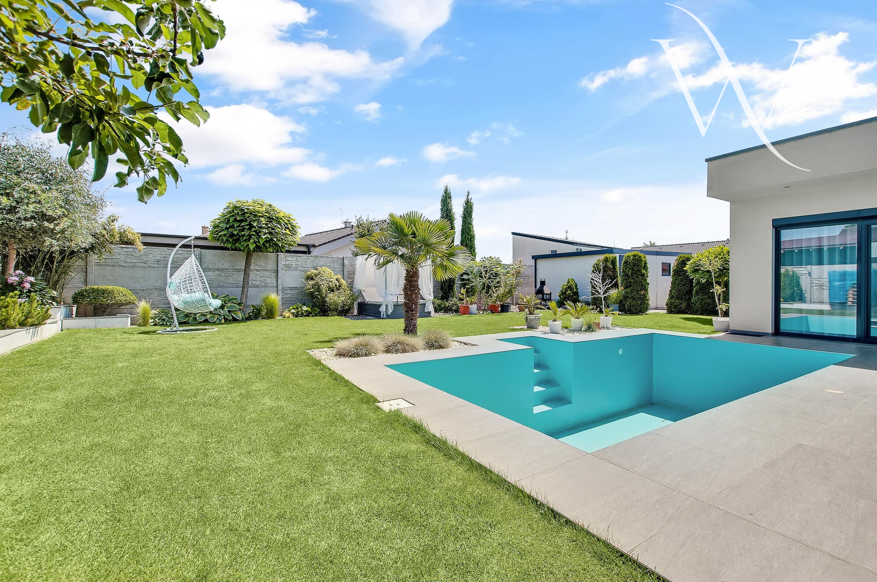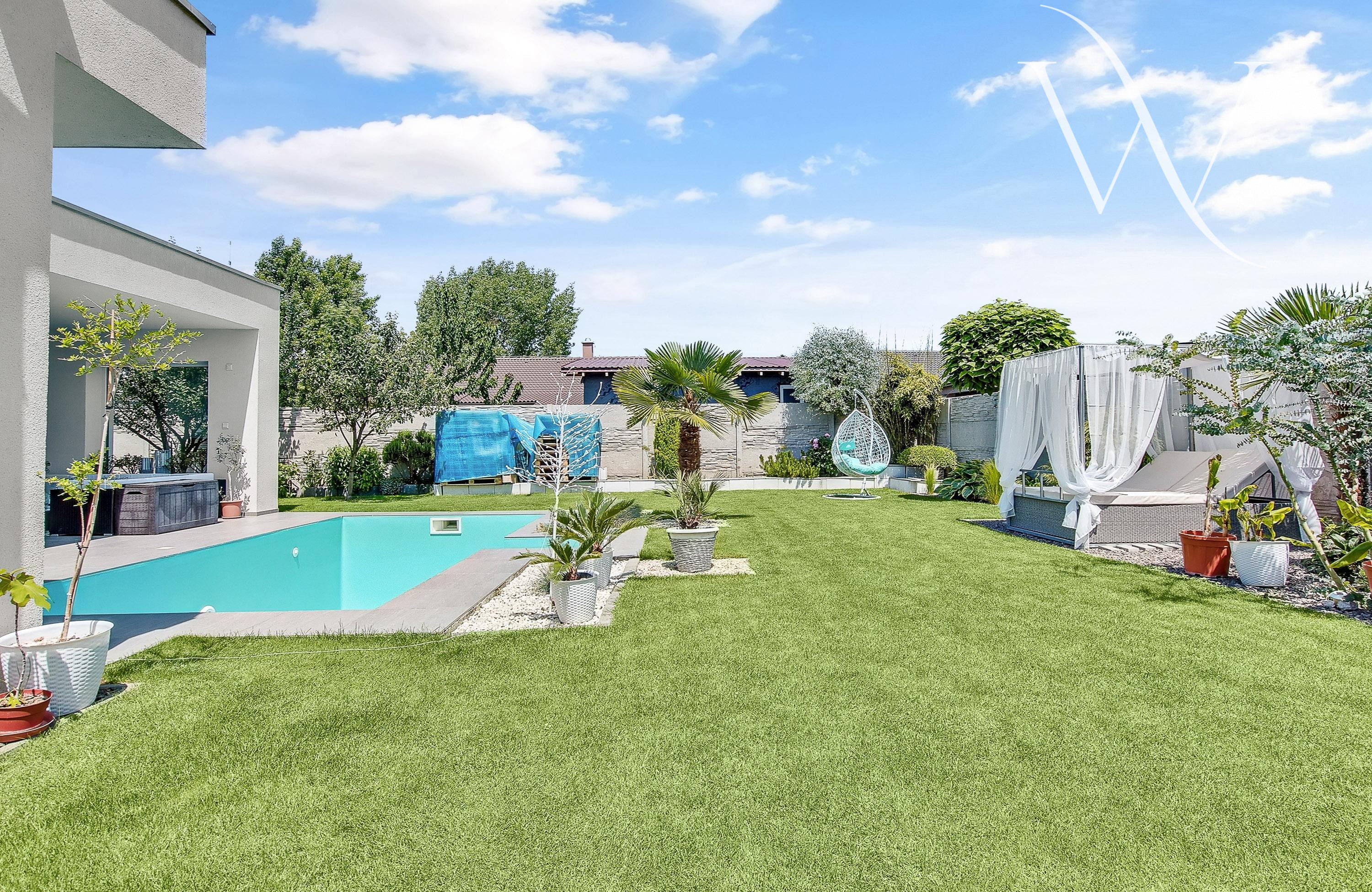 Ponúkame na predaj moderný 4-izbový rodinný dom v atraktívnej lokalite Hrubá Borša, okres Senec, postavený v roku 2018. Dom je samostatne stojaci, má úžitkovú plochu 99,92 m², zastavanú plochu 148,07 m² vrátane garáže a nachádza sa na pozemku s rozlohou 576 m². Súčasťou je priestranná terasa o veľkosti 33 m², bazén s výmerou 18 m² a garáž s plochou 24,6 m².