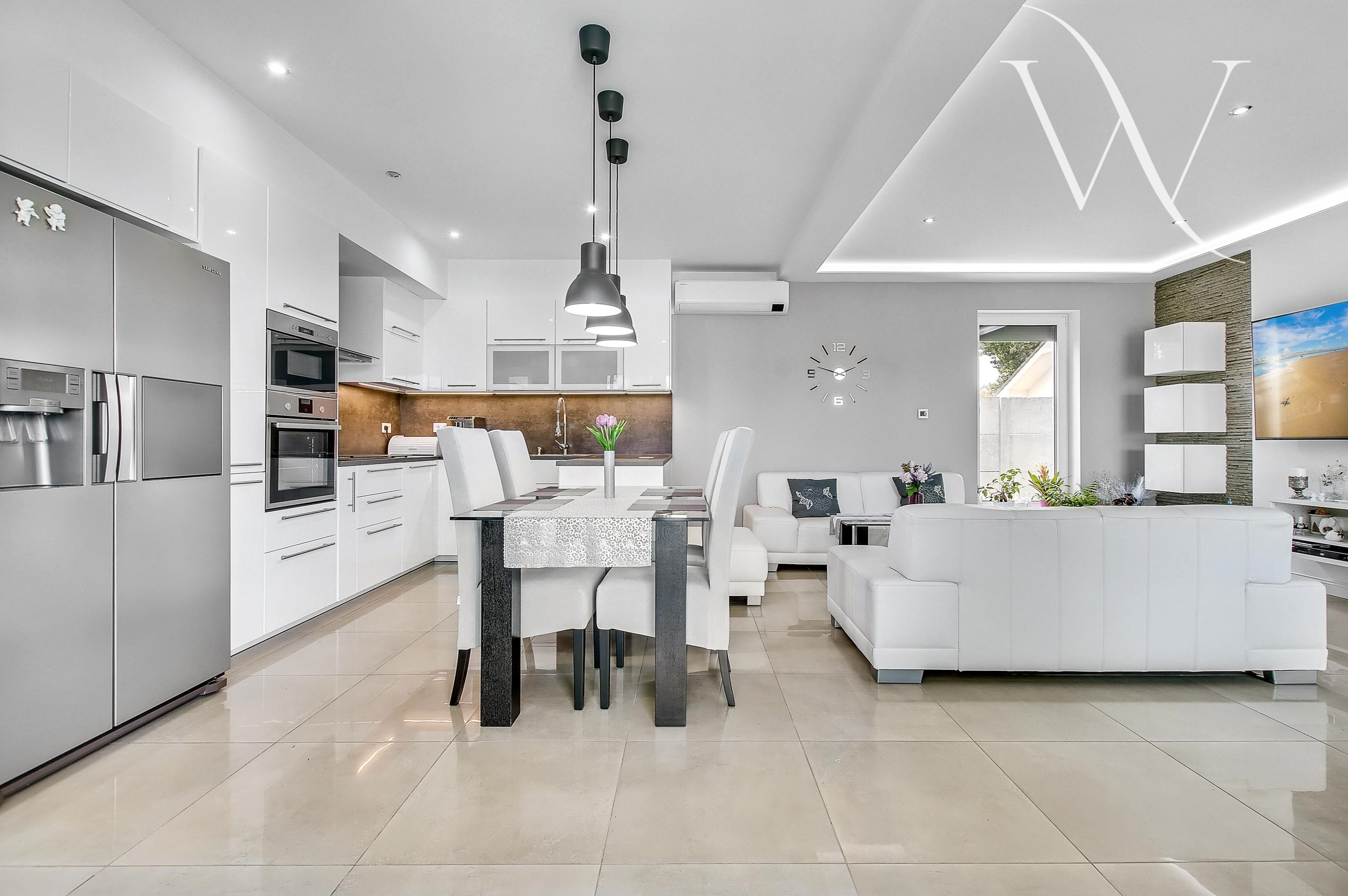 Parkovanie je zabezpečené v samostatnej garáži s plochou 24,6 m² a na dvore je k dispozícii ďalšie parkovacie miesto. Dom sa nachádza v pokojnej časti obce s výbornou občianskou vybavenosťou – materská škola je vzdialená približne 5 minút pešo, miestny obchod 3 minúty pešo a v obci sa nachádza aj známy golfový rezort. Mesto Senec je dostupné za približne 10 minút jazdy autom a Bratislava za približne 30 minút.