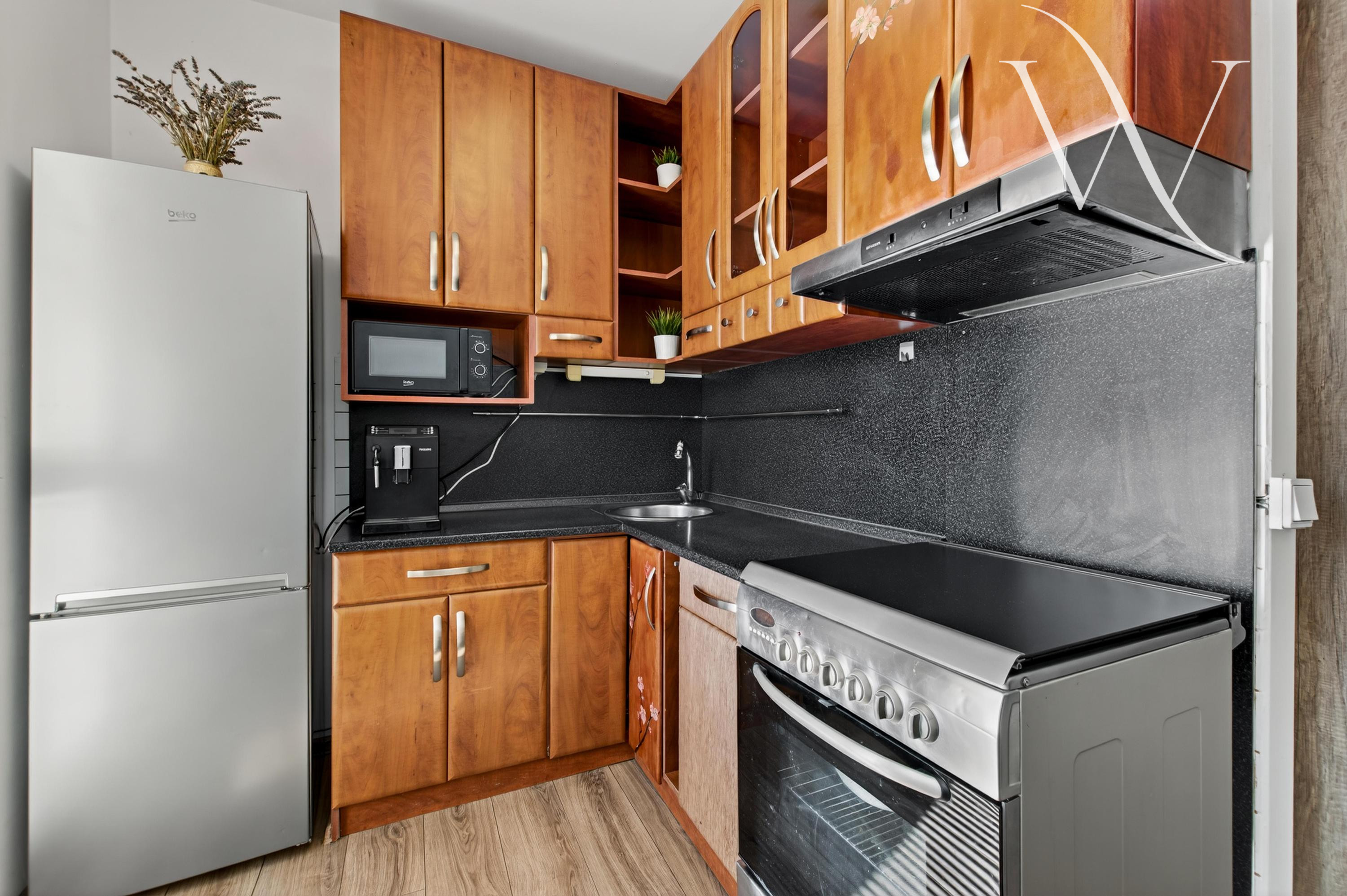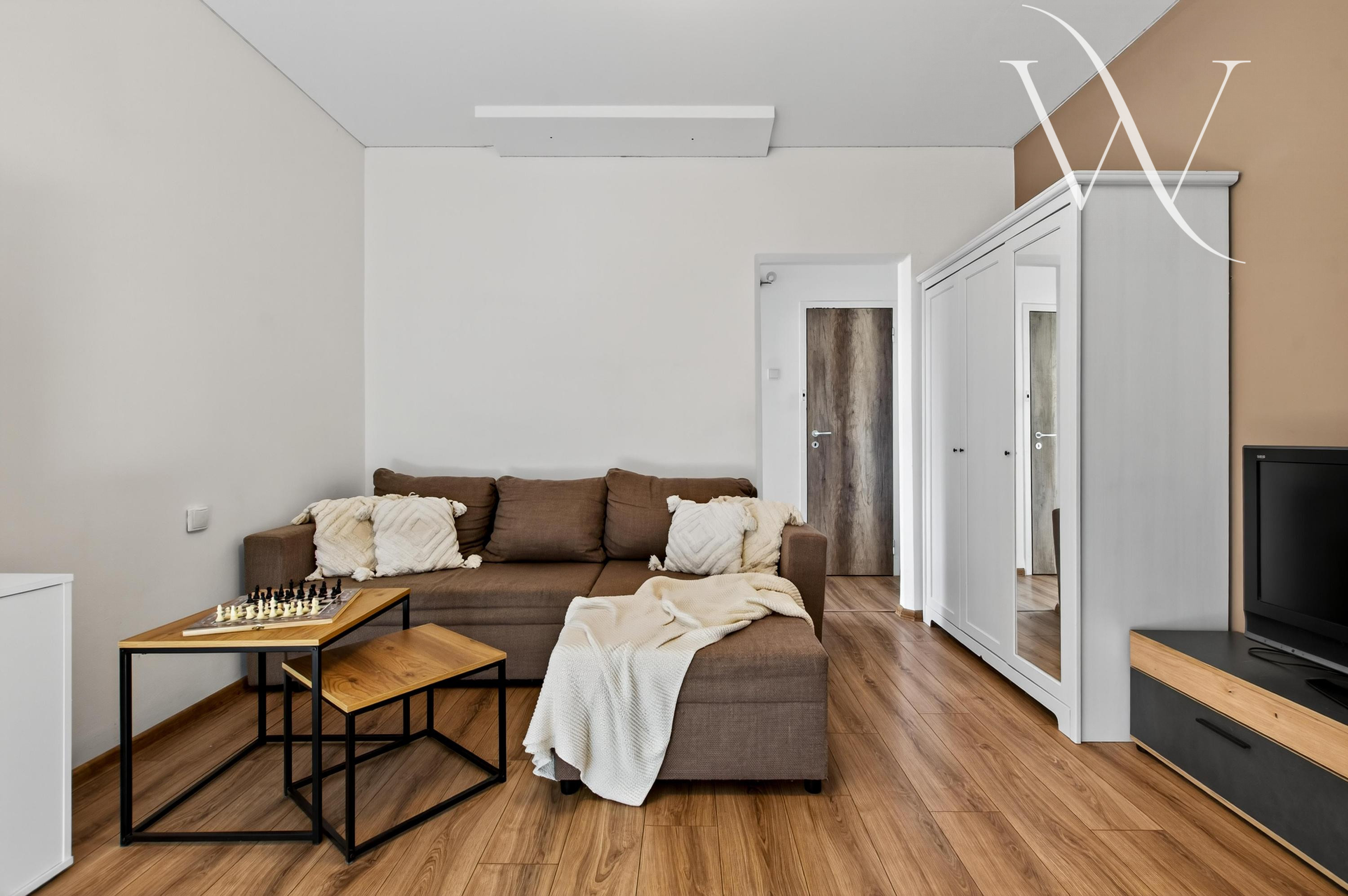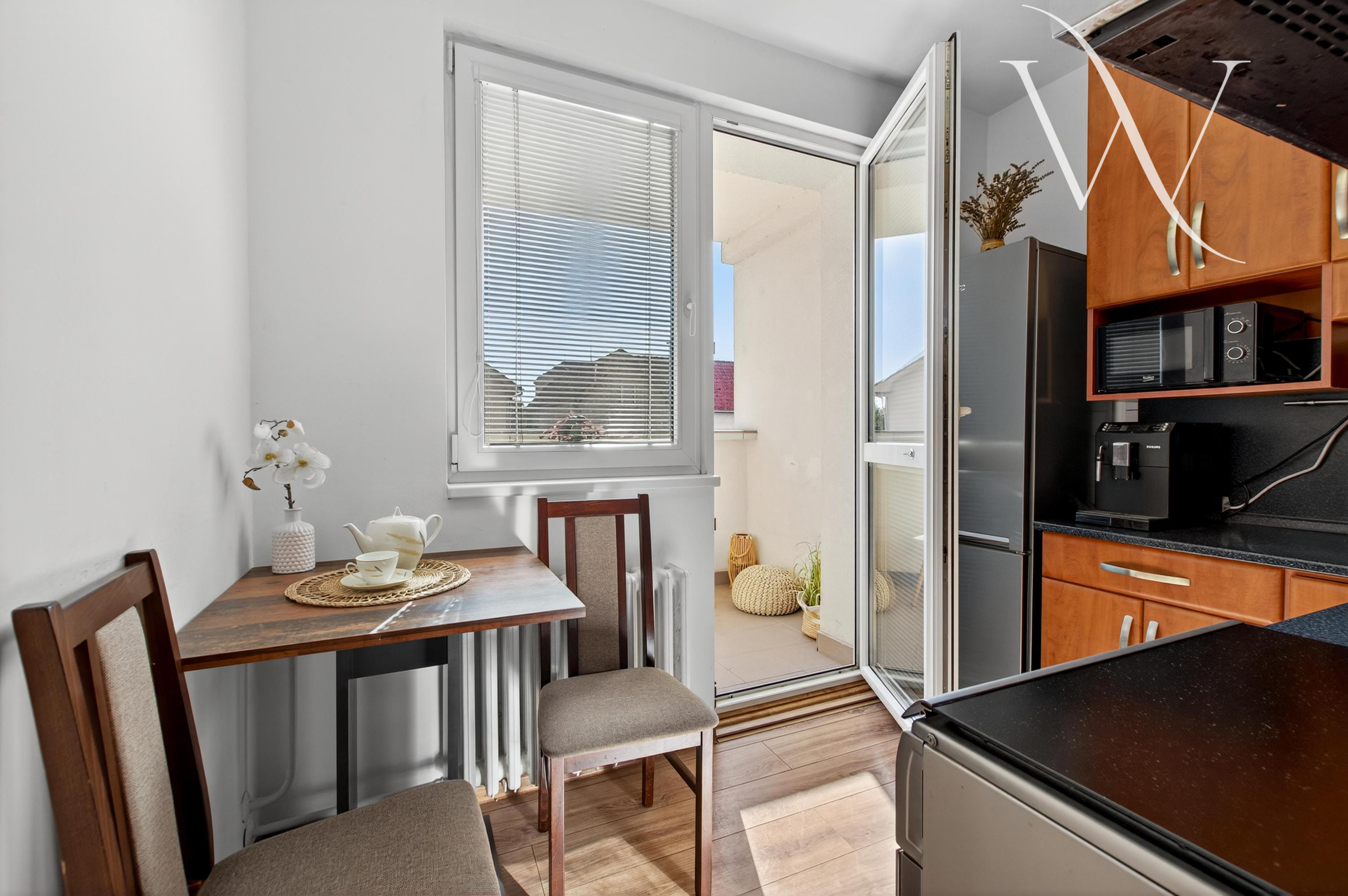 Obývacia izba so vstupom do samostatnej spálne, kúpeľňa s vaňou, samostatné WC, samostatná kuchyňa s výstupom na balkón.