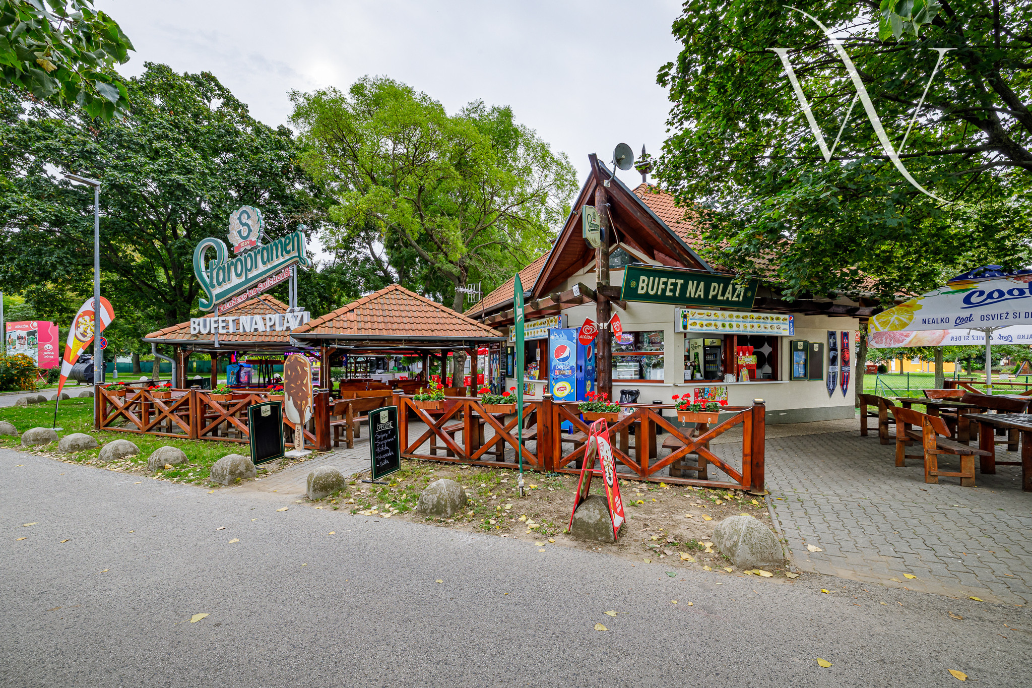 Lokalita, ktorá generuje prirodzený pohyb zákazníkov. Bufet sa nachádza v absolútnom centre diania – len pár krokov od pláže, detských ihrísk, cyklotrás, Aquaparku, amfiteátra a festivalového života. O zákazníkov núdza nie je – denne ho navštevujú rekreanti, rodiny s deťmi, cyklisti aj dovolenkári z neďalekých penziónov. V blízkosti je aj železničná a autobusová stanica, čo zabezpečuje výbornú dostupnosť bez auta.