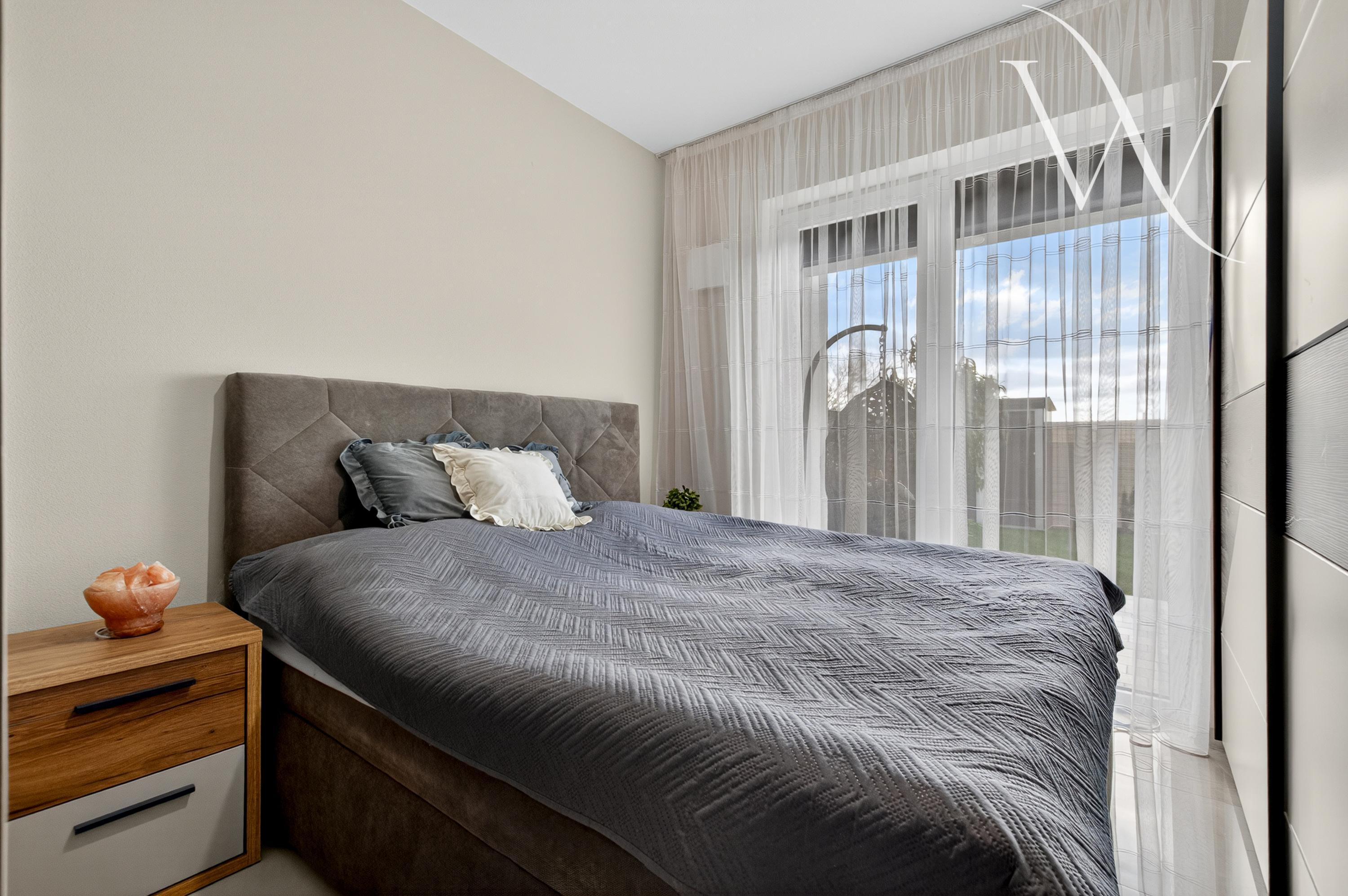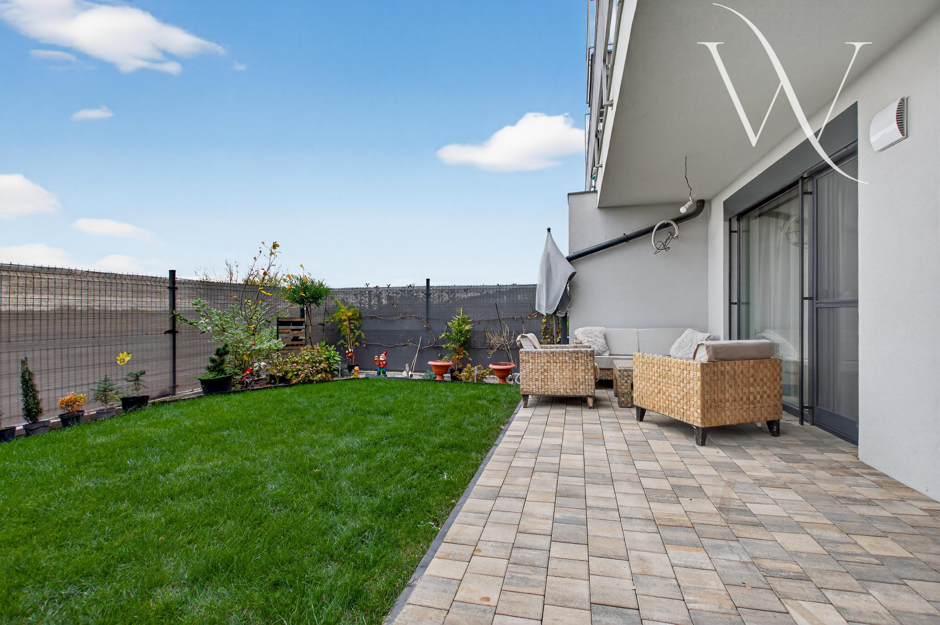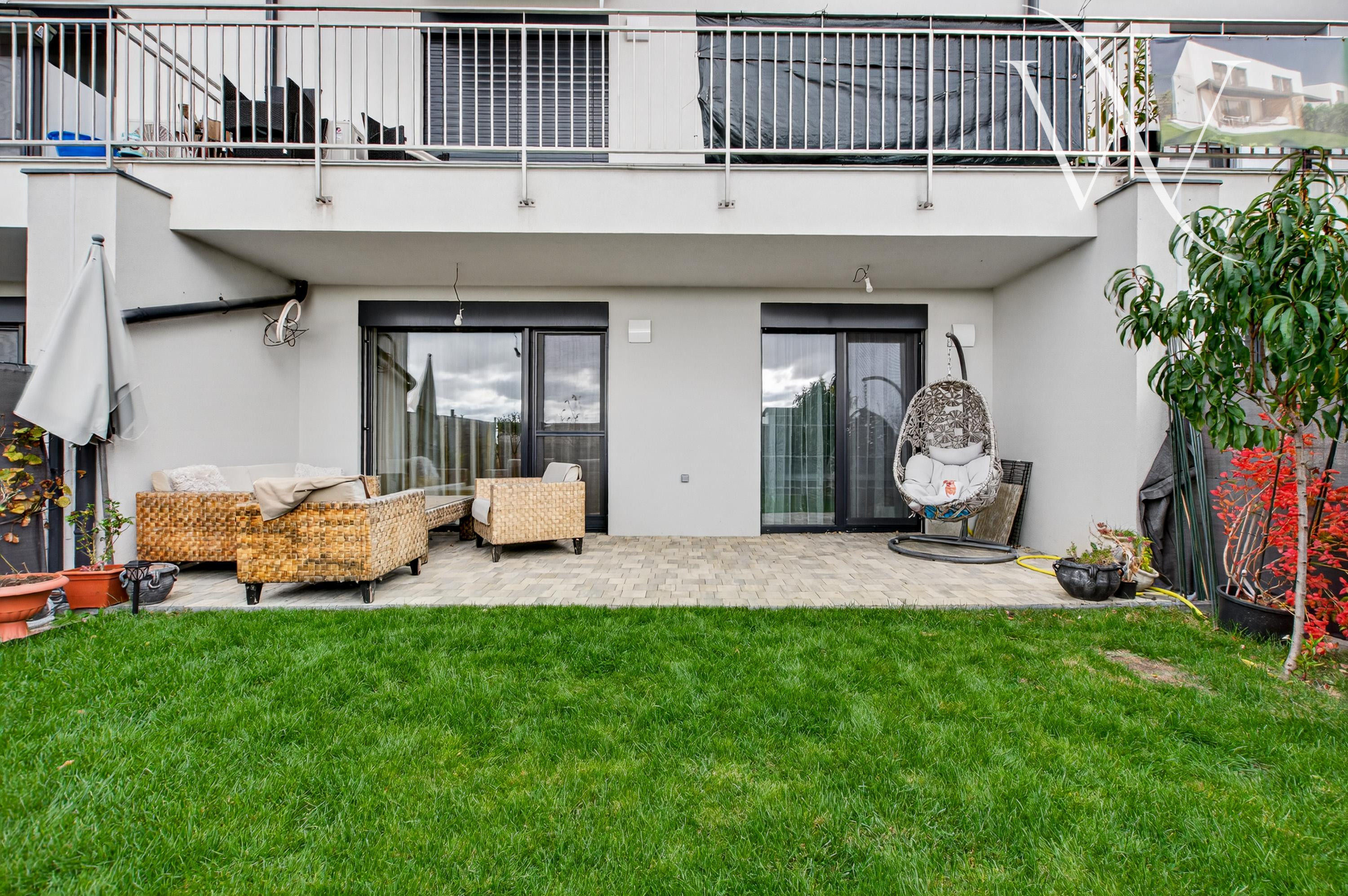 Byt má veľkosť 64,71 m² a ponúka vlastnú predzáhradku o výmere 54 m², ideálnu na rodinný relax, hranie s deťmi alebo grilovanie s priateľmi. Vstup na terasu je ako z obývacej izby tak aj z hlavnej spálne.