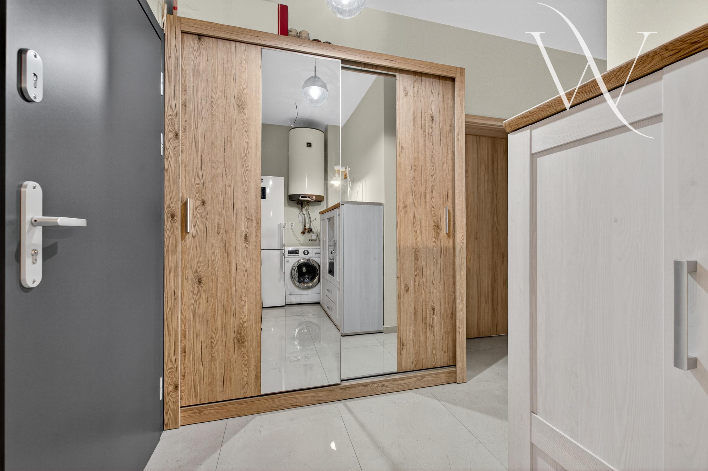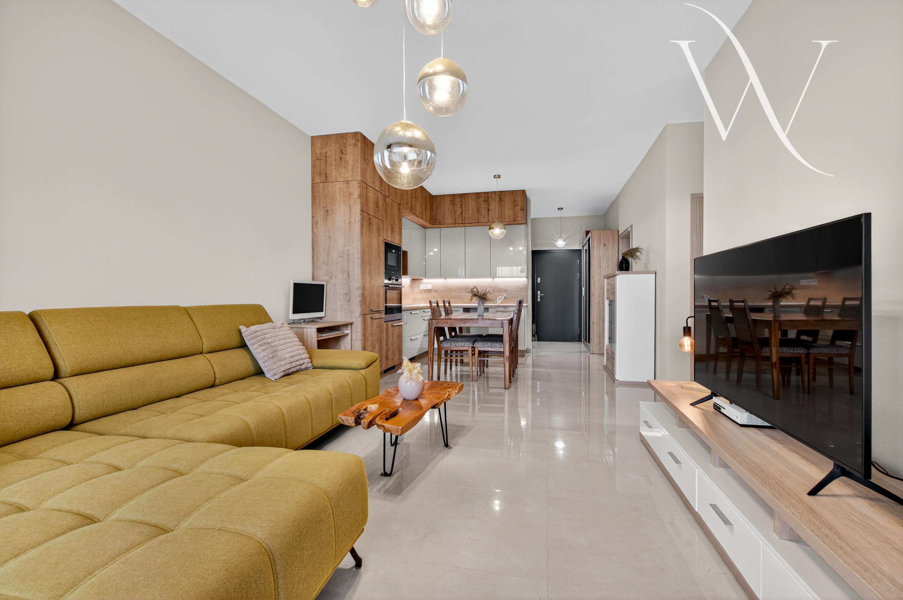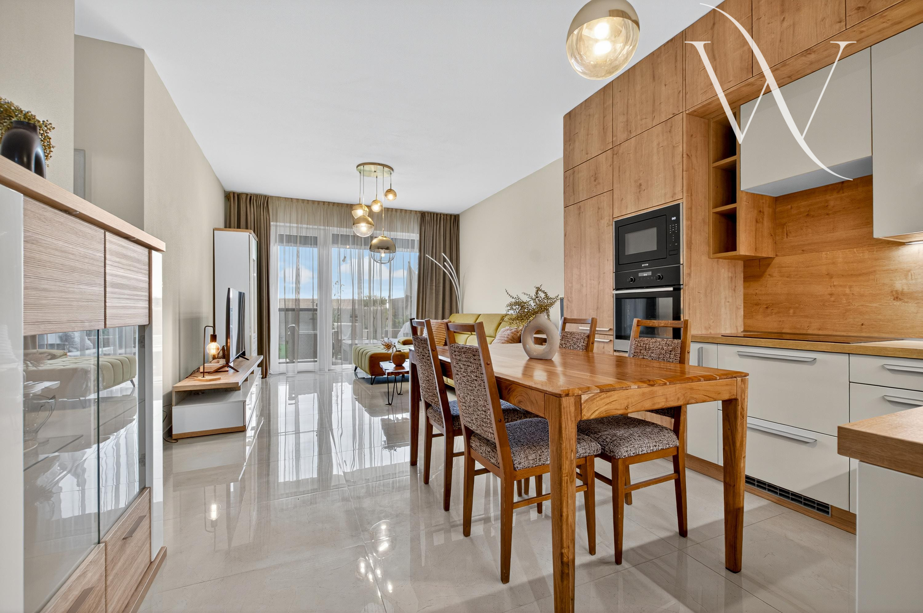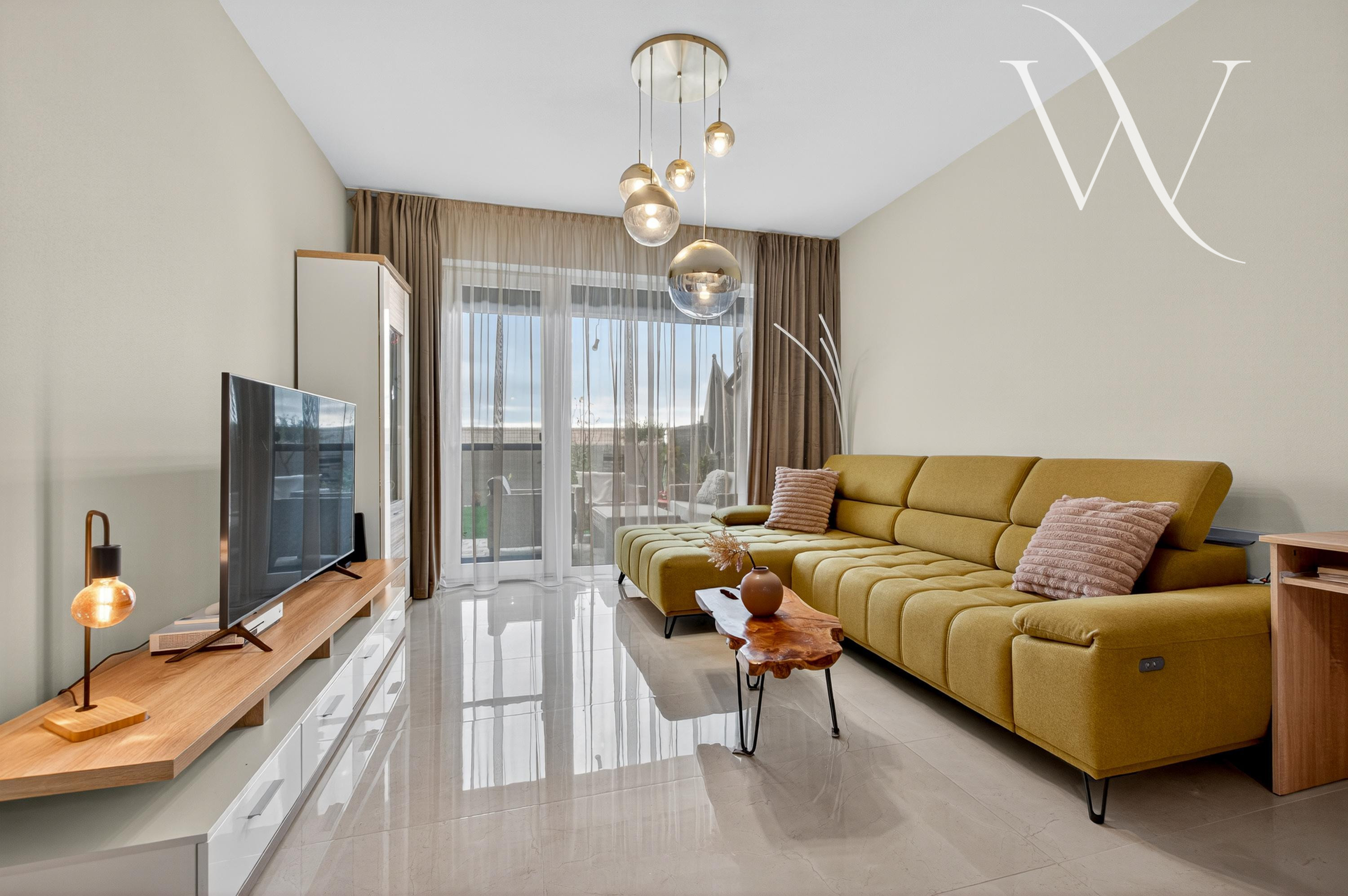 Byt má veľkosť 64,71 m² a ponúka vlastnú predzáhradku o výmere 54 m², ideálnu na rodinný relax, hranie s deťmi alebo grilovanie s priateľmi. Vstup na terasu je ako z obývacej izby tak aj z hlavnej spálne.