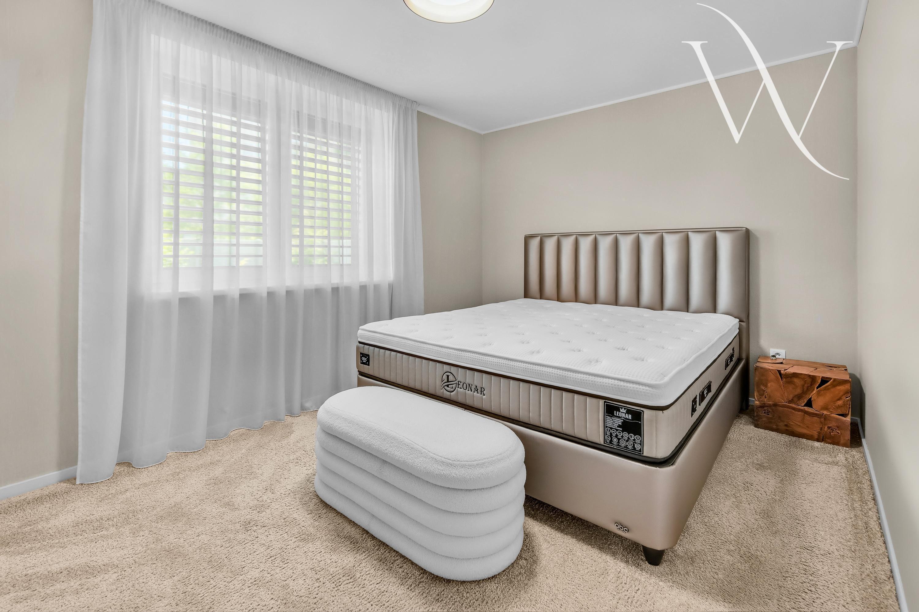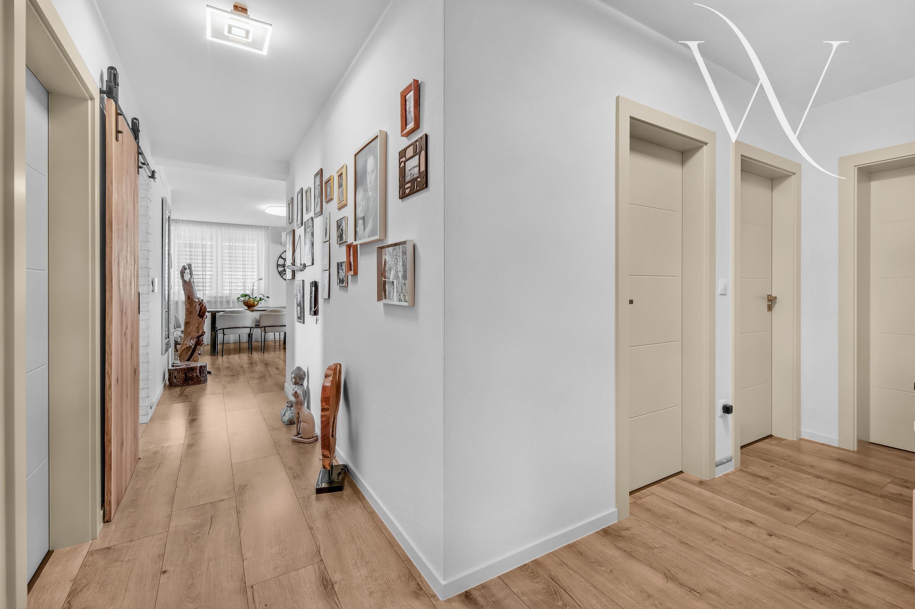 Tri samostatné spálne poskytujú dostatok súkromia. Súčasťou je aj samostatný šatník. K dispozícii je priestranná kúpeľňa s vaňou aj sprchovým kútom, samostatné WC, vstupná chodba s úložným priestorom.