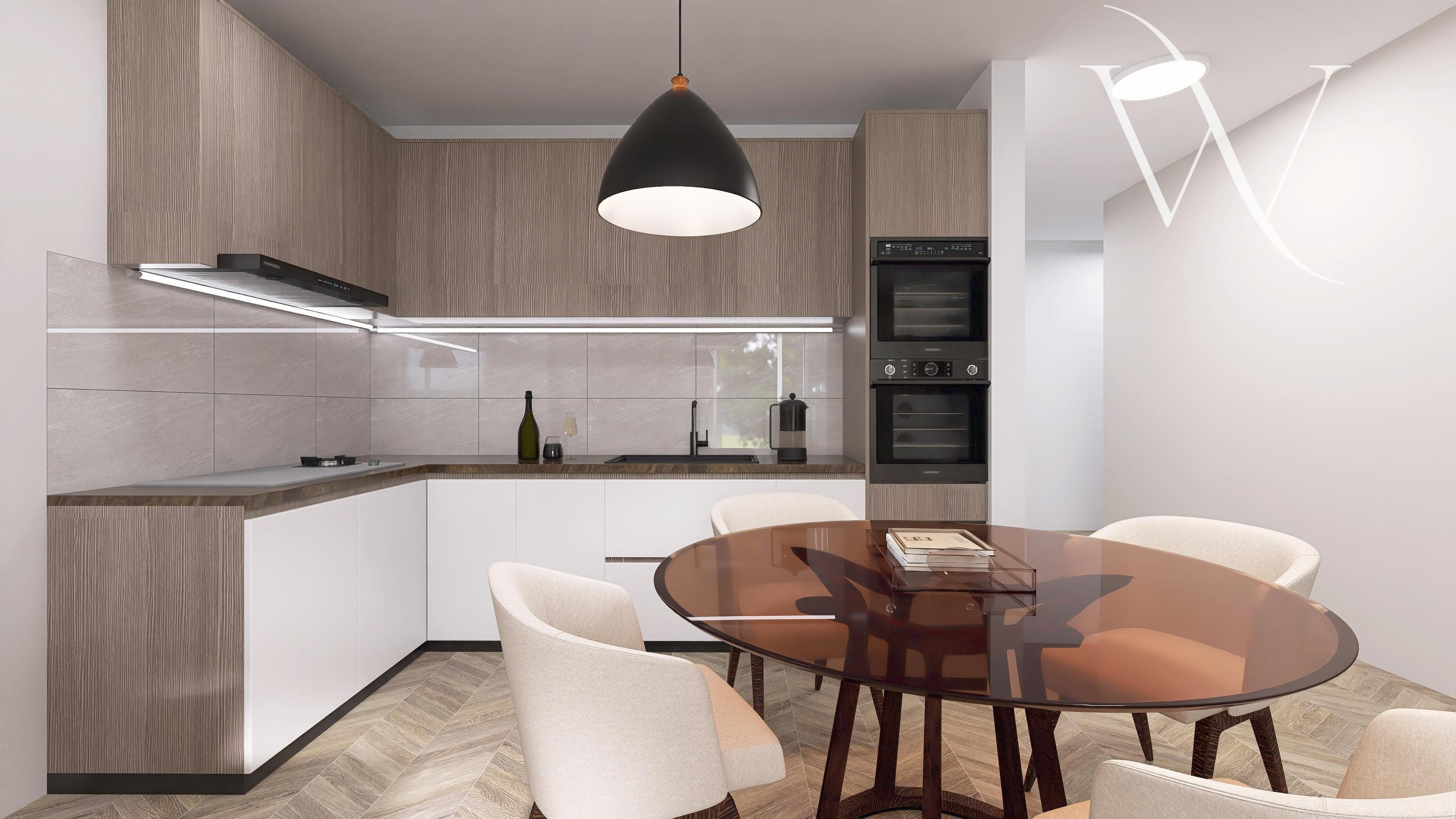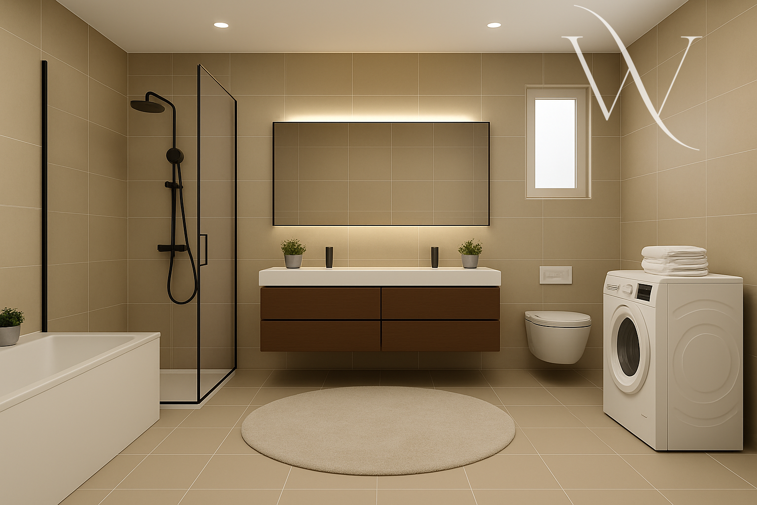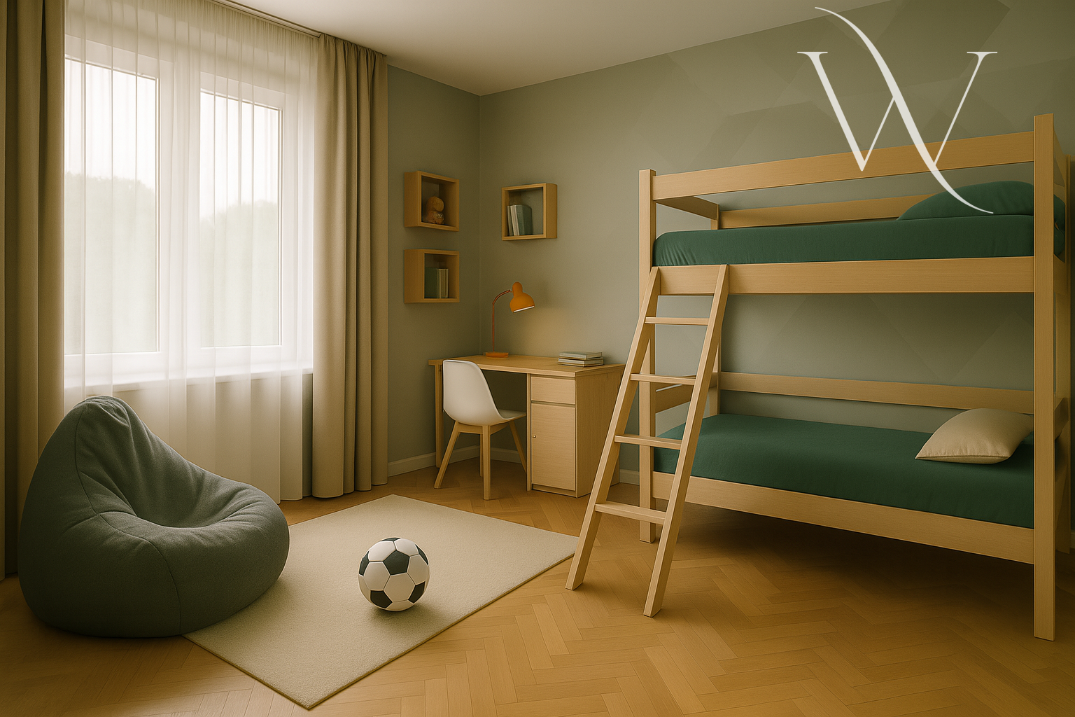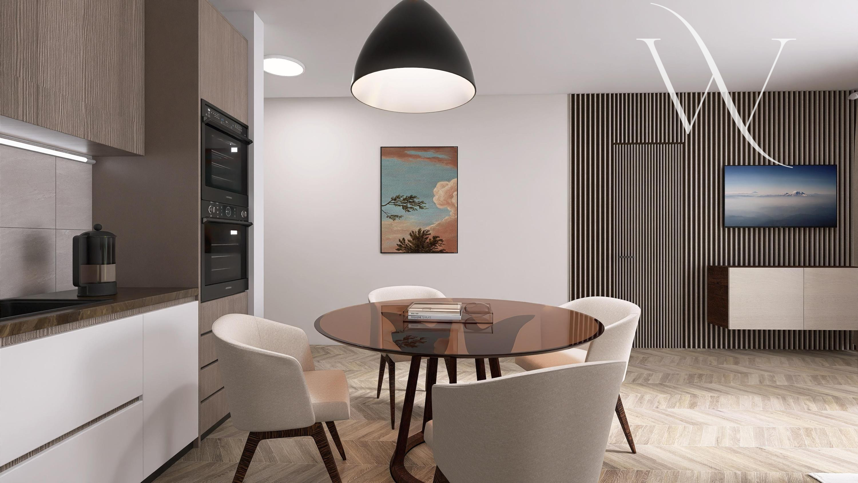 Na prízemí sa nachádza vzdušná a presvetlená obývacia izba prepojená s kuchyňou, ktorá tvorí srdce celého bývania. Pri vstupe vás víta priestranná chodba s miestom na botník aj vstavanú skriňu, vedľa ktorej je situovaná samostatná toaleta. Praktickým doplnkom hlavnej dennej časti je špajza spojená s technickou miestnosťou, kde sa nachádza aj vnútorná jednotka tepelného čerpadla – úsporné a moderné riešenie pre domácnosť.