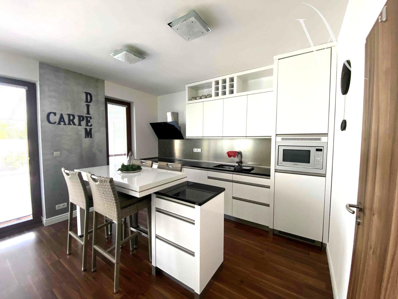 - nadštandardná nová kuchyňa s ostrovčekom vybavená spotrebičmi - chladnička, digestor a varná doska, umývačka a mikrovlnka