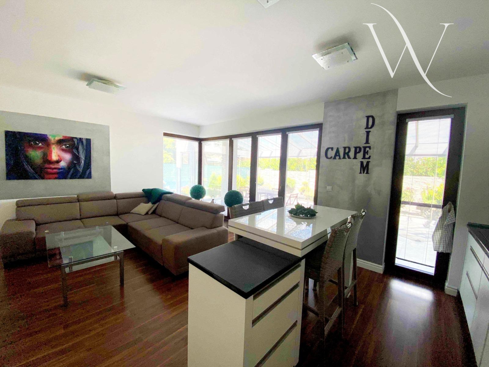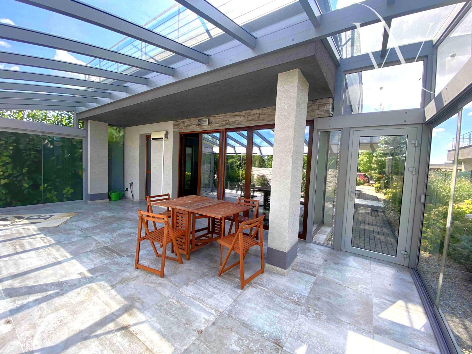 - obývačka s kuchyňou a obývačkou so vstupom na presklenú terasu a do záhrady