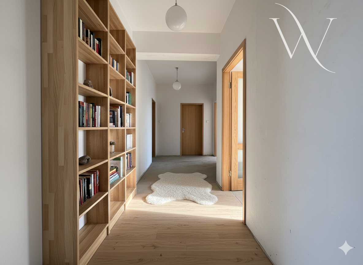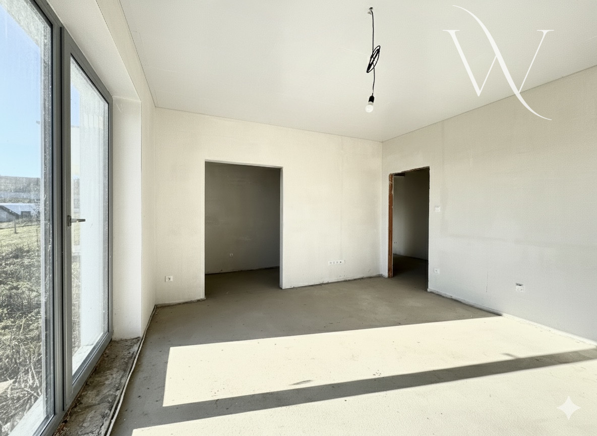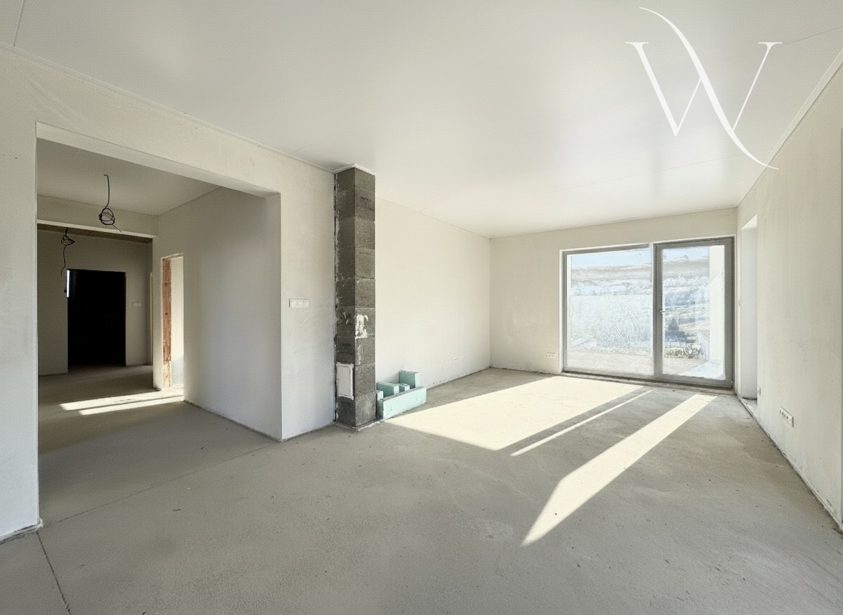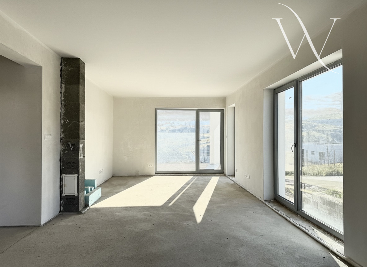 Dom je dispozične navrhnutý veľmi prakticky a svetlo: Vstupná chodba, z ktorej je vstup do prvej kúpeľne so sprchovým kútom a toaletou. Zo zádveria vedie chodba, ktorá prepája všetky miestnosti v dome. Tri samostatné izby, z toho dve disponujú vlastným šatníkom a tretia má prípravu na vstavanú skriňu (vybudovaný priestor v stene). Hlavná kúpeľňa je predpripravená na vybavenie sprchovacím kútom aj vaňou, toaletou a dvojumývadlom. Veľkým benefitom je svetlá obývacia izba prepojená s kuchyňou, ktorá je vďaka veľkým oknám krásne presvetlená počas celého dňa. Je tu sj predpríprava na krb na príjemné posedenie hlavne v zimných mesiacoch. Z obývačky je aj priame prepojenie na terasu, čo vytvára príjemné miesto na oddych. Atmosféra a lokalita Dom ponúka spojenie moderného bývania a pokojného vidieckeho prostredia. Vďaka zvýšenej polohe a orientácii má nehnuteľnosť nádherný výhľad na Martinské hole. Ideálne miesto pre tých, ktorí chcú bývať blízko mesta, no s atmosférou pokoja, zelene a priestoru.