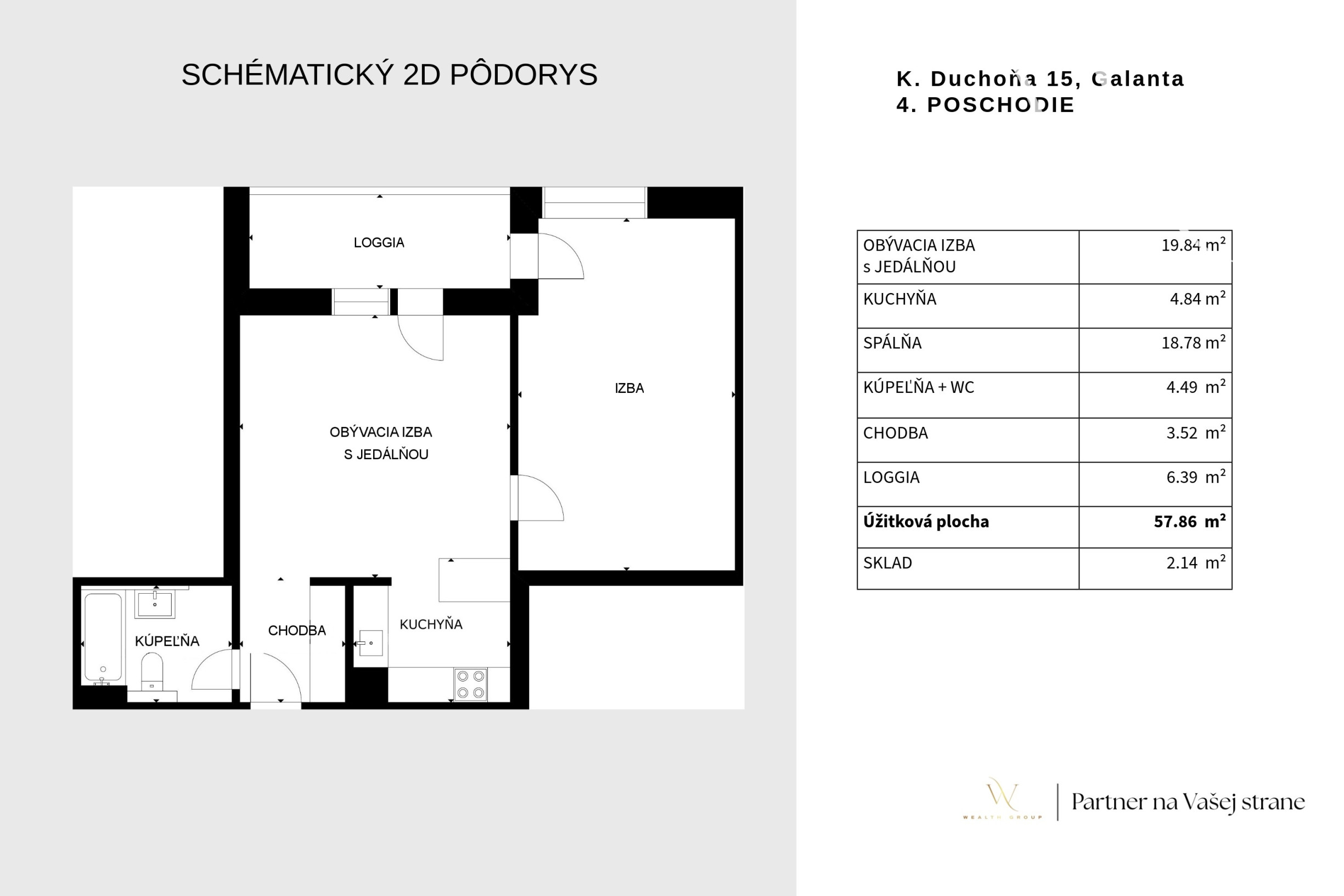 Ponúkame exkluzívne na prenájom moderný, kompletne zariadený 2-izbový byt s úžitkovou plochou 58 m² a balkónom, nachádzajúci sa v obľúbenom projekte Galanta West, ulica Karola Duchoňa, v meste Galanta.