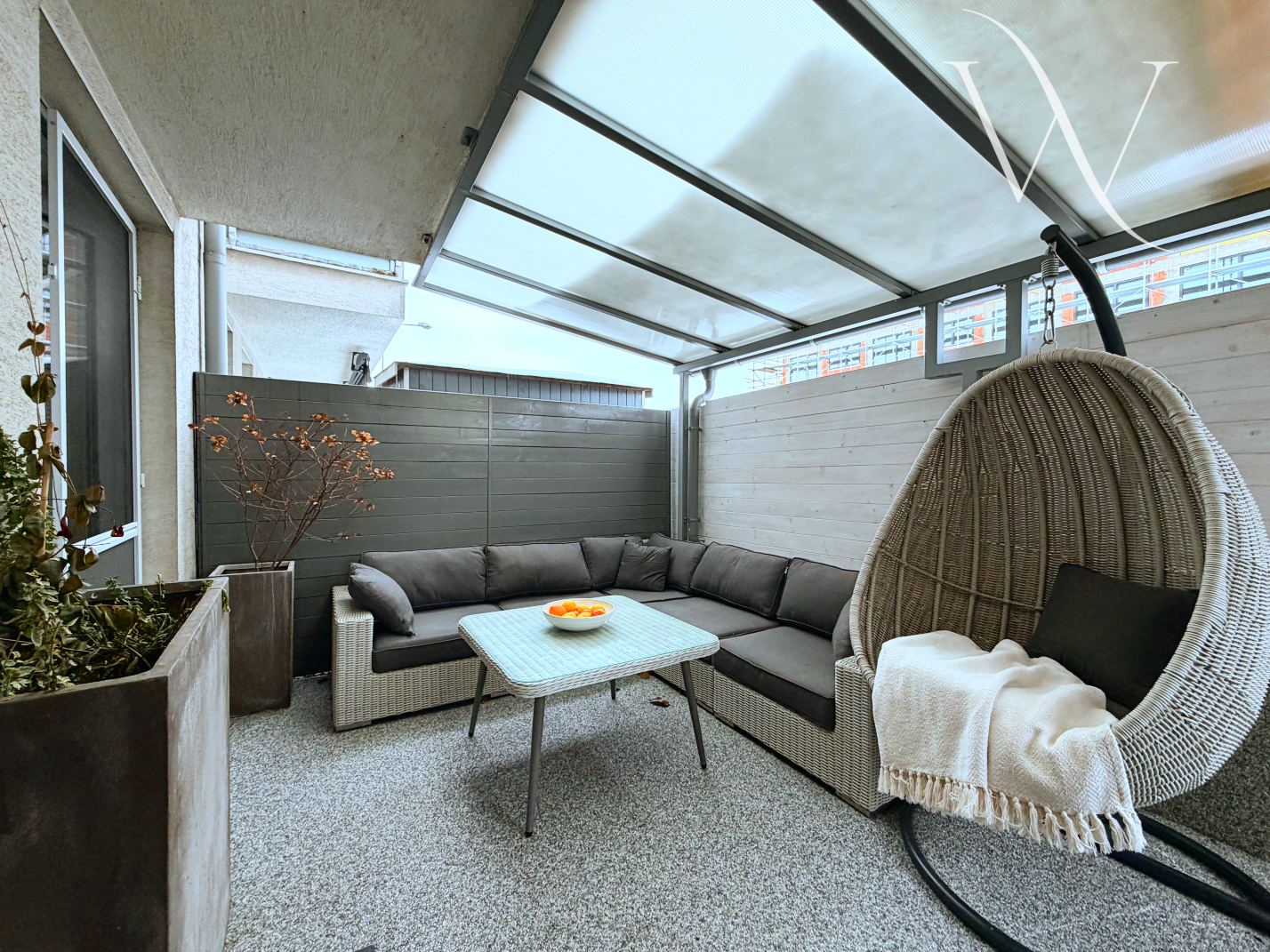 Na predzáhradke sa nachádza pieskovisko pre deti, vďaka čomu je byt ideálny pre rodiny. Tento priestor je zároveň veľmi vhodný aj pre zvieracích miláčikov, ktorým poskytuje bezpečný výbeh. Súčasťou exteriéru je aj praktický záhradný domček, ktorý slúži ako úložný priestor na náradie, sezónne veci alebo veci, ktoré nechcete skladovať v byte.