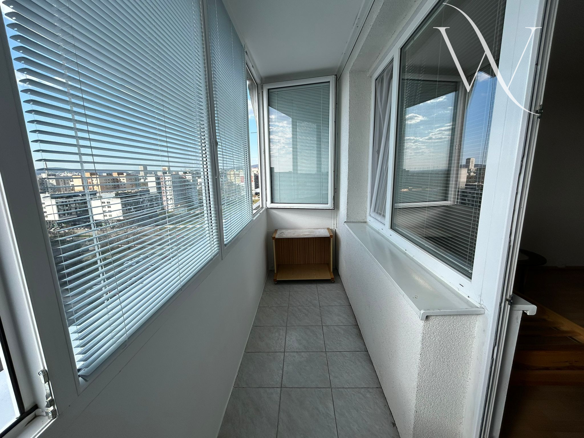 Byt má úžitkovú plochu 23 m² + balkón o výmere 5 m². Je orientovaný na západ, čo zabezpečuje dostatok prirodzeného svetla počas dňa. Balkón je zasklený a vybavený žalúziami, rovnako ako okno a balkónové dvere, čo poskytuje príjemné súkromie.