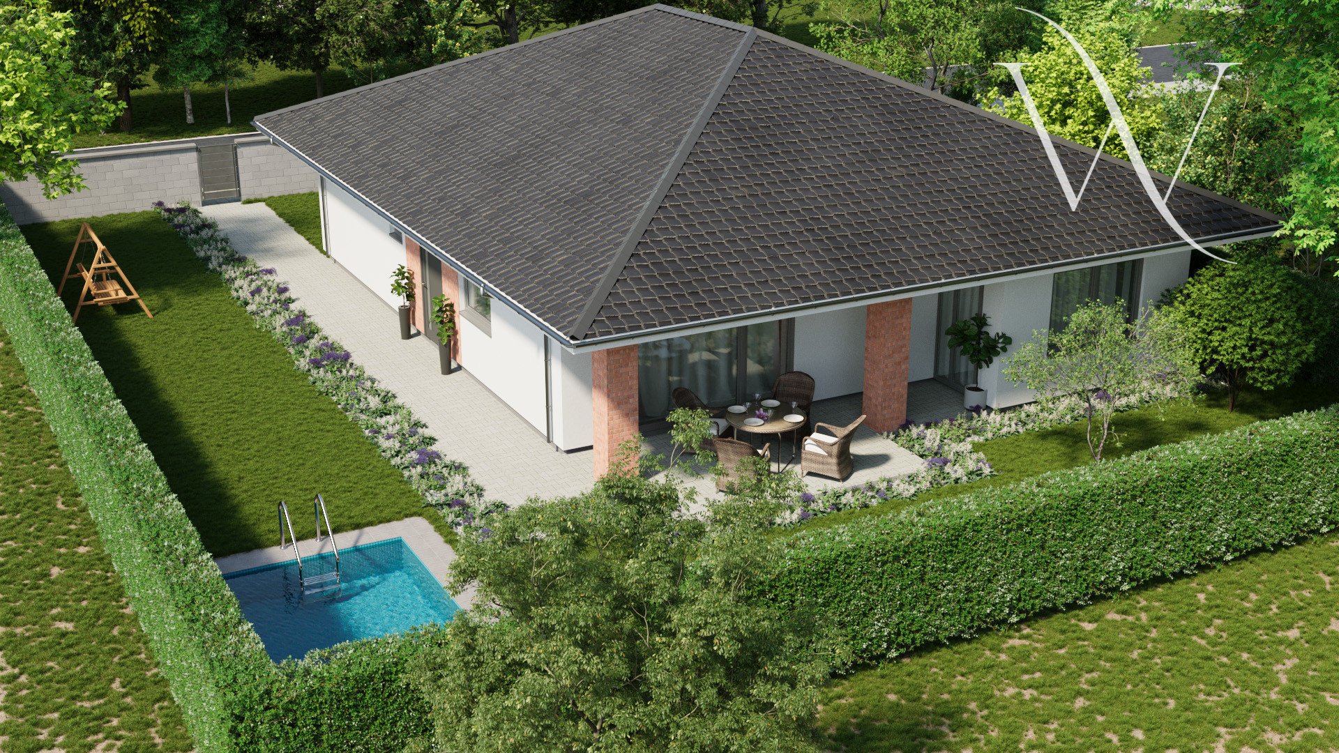 Rodinný dom je postavený na pozemku o výmere 508 m². Zastavaná plocha je 160 m², úžitková plocha domu predstavuje 115 m² a k dispozícii je aj krytá terasa o výmere 16,9 m². Súčasťou domu je pochôdzna povala s úložným priestorom a garáž.